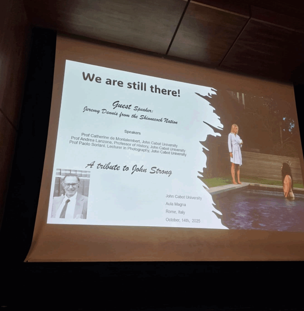 Meanwhile, in Rome, Jeremy Dennis was invited to speak on a panel titled “Perspectives on Native American Art and Identity” at John Cabot University and engage with international students. Scholars and artists from three different departments—Art and Design, History and Humanities, and Modern Languages and Literature, highlighted the cultural, social, and historical importance of Jeremy’s work.