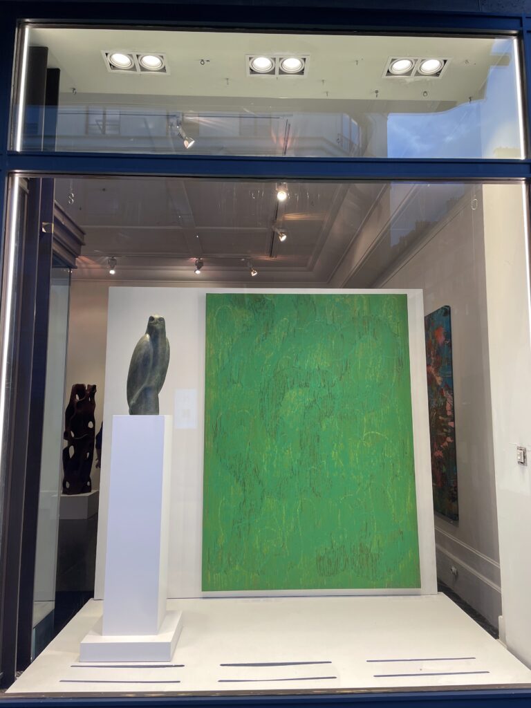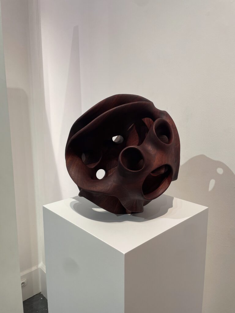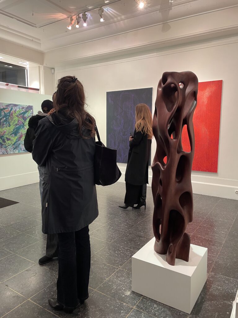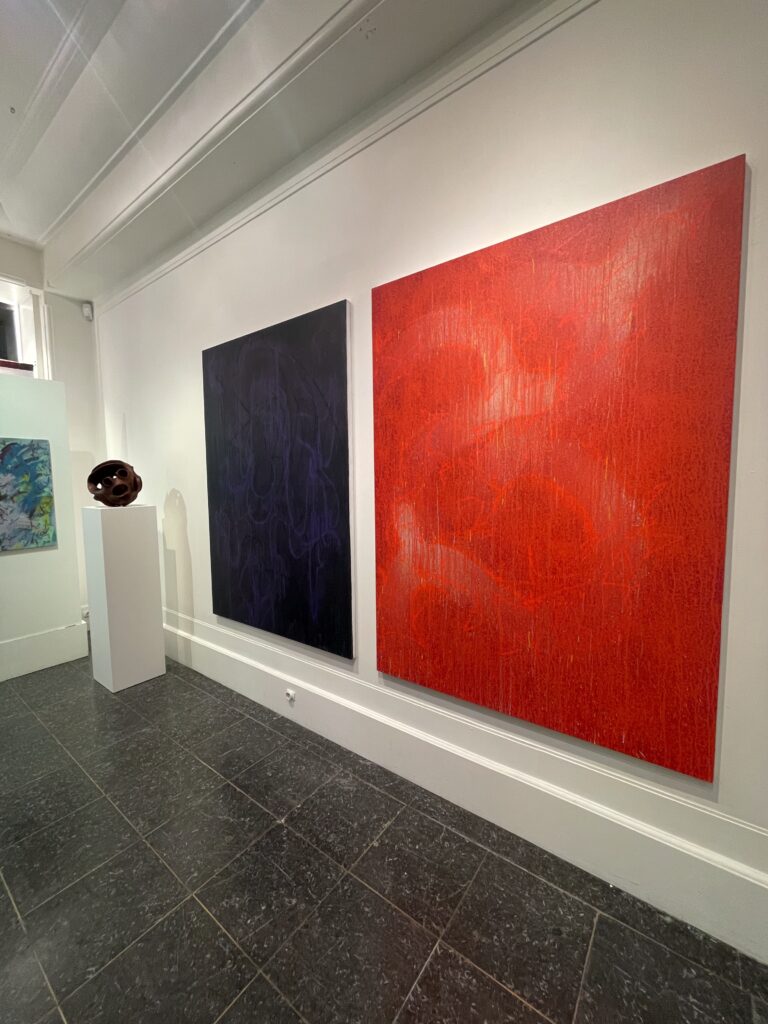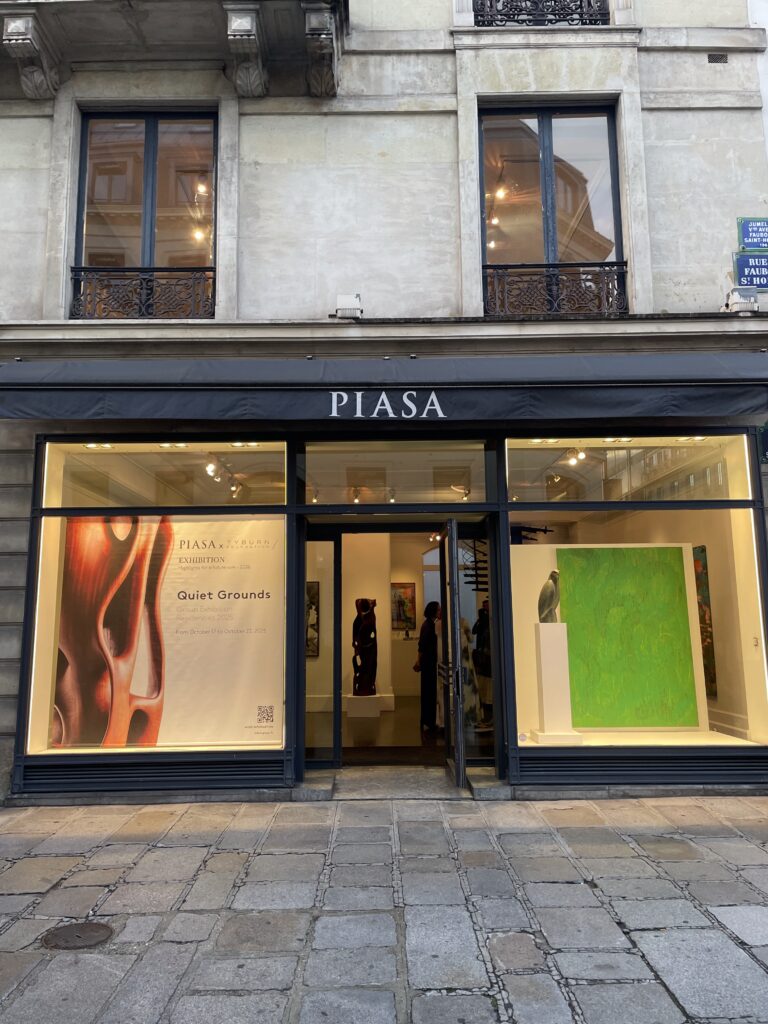 October 20th, 2025 — The Tyburn Foundation presented Quiet Grounds, a group exhibition held from October 17th to 22nd at PIASA during Art Basel Paris, celebrating work from residencies across Italy and Zimbabwe in spring and summer 2025. The show featured new paintings by Driaan Claassen (CRF 2025) made in his studio, Gufo, at Civitella. It was there that Driaan expanded his exploration of consciousness and the human psyche, venturing beyond sculpture into painting for the first time, building on his engagement with materiality, form and emotional resonance. Programs Assistant Greta Caseti visited the exhibition on October 20th and connected these works—expanses of layered colors punctuated with sketch-like lines and dripping pigment, creating tension between fluid movement and sharp, abstracted forms—to the shapes seen in Driaan’s sculpture.